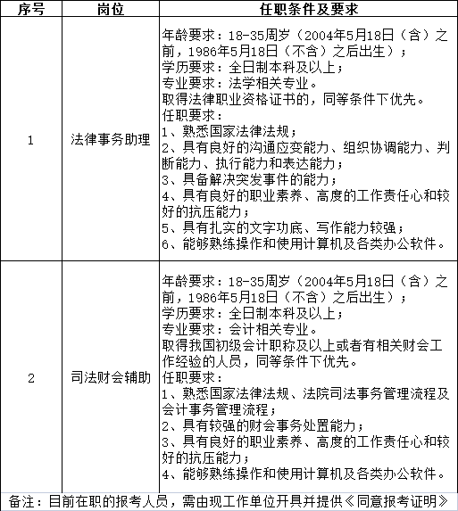 根据工作需要,长治市壶关县人民法院委托山西304永利官网网址人力资源派遣有限公司(以下简称:304永利官网网址人力资源公司),面向社会公开招聘7名司法辅助人员(法律事务助理 6 名、司法财会辅助 1 名),现将有关事项公告如下:
