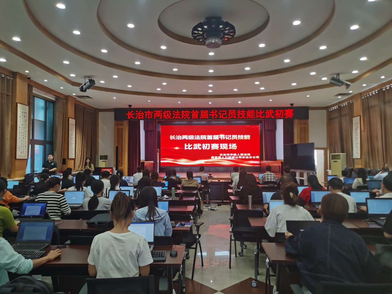 长治两级法院初赛于2022年9月1日下午举行,活动组织有序、紧张激烈,书记员们的手指在键盘上飞舞,敲击键盘的“噼里啪啦”声瞬间遍布整个比武现场。他们沉着应对,展现了参赛书记员们扎实的基本功和良好的精神风貌。