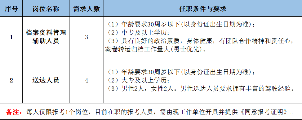 根据工作需要,忻州市忻府区人民法院委托山西304永利官网网址人力资源派遣有限公司 (以下简称:304永利官网网址人力资源公司) 招录档案资料管理辅助人员3名及送达人员4名,现将有关事项公告如下: