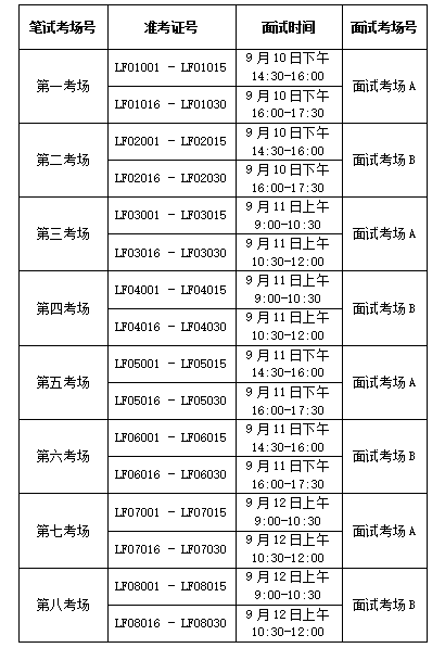3. 参加面试的考生须在面试前15分钟到考场外的候考区签到。