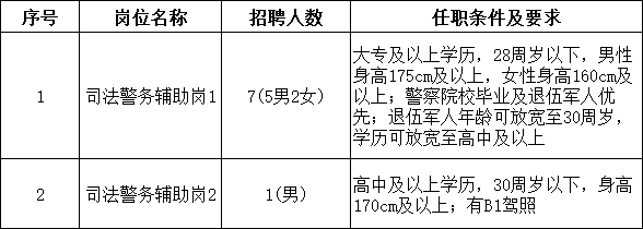 (一)招聘岗位:司法警务辅助人员。
