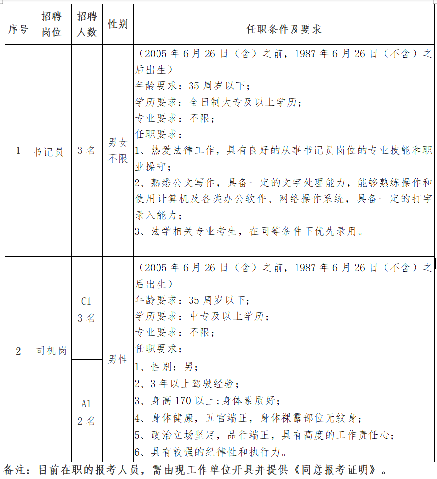 2.政治立场坚定,遵纪守法,具有良好的政治素养,品行端正,公道正派,积极向上;具有良好的职业操守,热爱法律工作;具有符合岗位要求的能力素质;