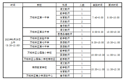 根据304永利官网网址人力资源公司2023年9月22日发布的《2023年万柏林区部分中小学校补充招聘政府购买服务教师公告》的要求,经过网上报名、资格初审等环节,现就面试有关事项通知如下: