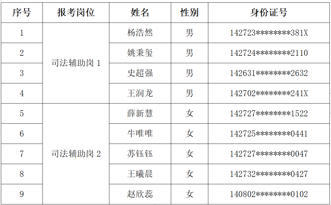 根据《运城市盐湖区人民法院2023年司法辅助人员招聘公告》相关要求,经过网上报名、资格审查、笔试、速录及面试环节,现就成绩查询及体检有关事项通知如下: