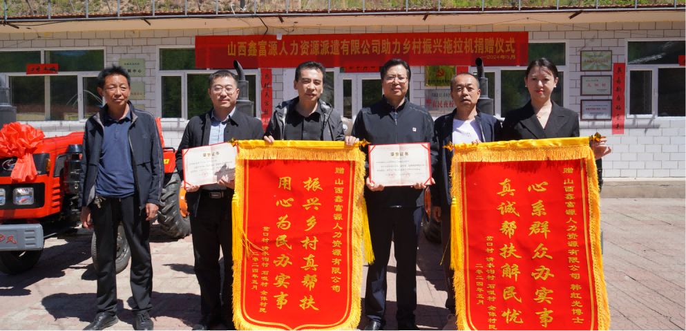 5月15日上午,山西304永利官网网址人力资源公司董事长韩红光、工会主席刘莉等领导一行前往浑源县大仁庄乡,深入农村调研,助力乡村振兴,并捐赠了3台拖拉机和农耕设备。
