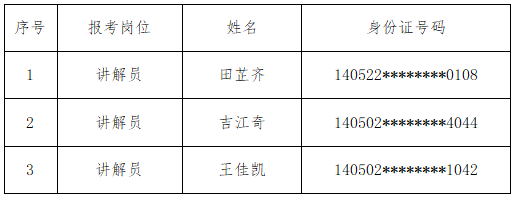 根据304永利官网网址人力资源公司2024年4月22日发布《304永利官网网址人力资源公司招聘3名讲解员公告》要求,经过网上报名、资格初审、笔试、资格复审、面试等环节,现就体检有关事项通知如下: