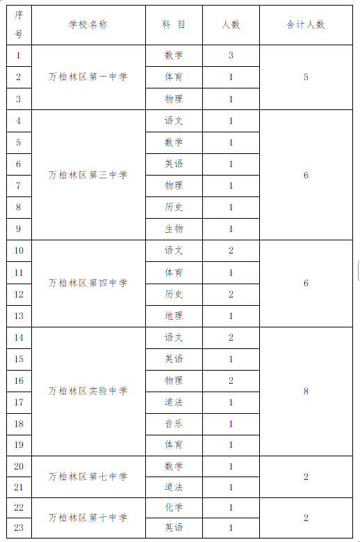 因万柏林区第一中学、万柏林区第三中学、万柏林区第四中学、万柏林区实验中学、万柏林区第七中学、万柏林区第十中学教师未招满,为满足我区部分中学校教学需要,结合学校实际,现面向社会为以上学校补充招聘政府购买服务教师,具体公告如下:
