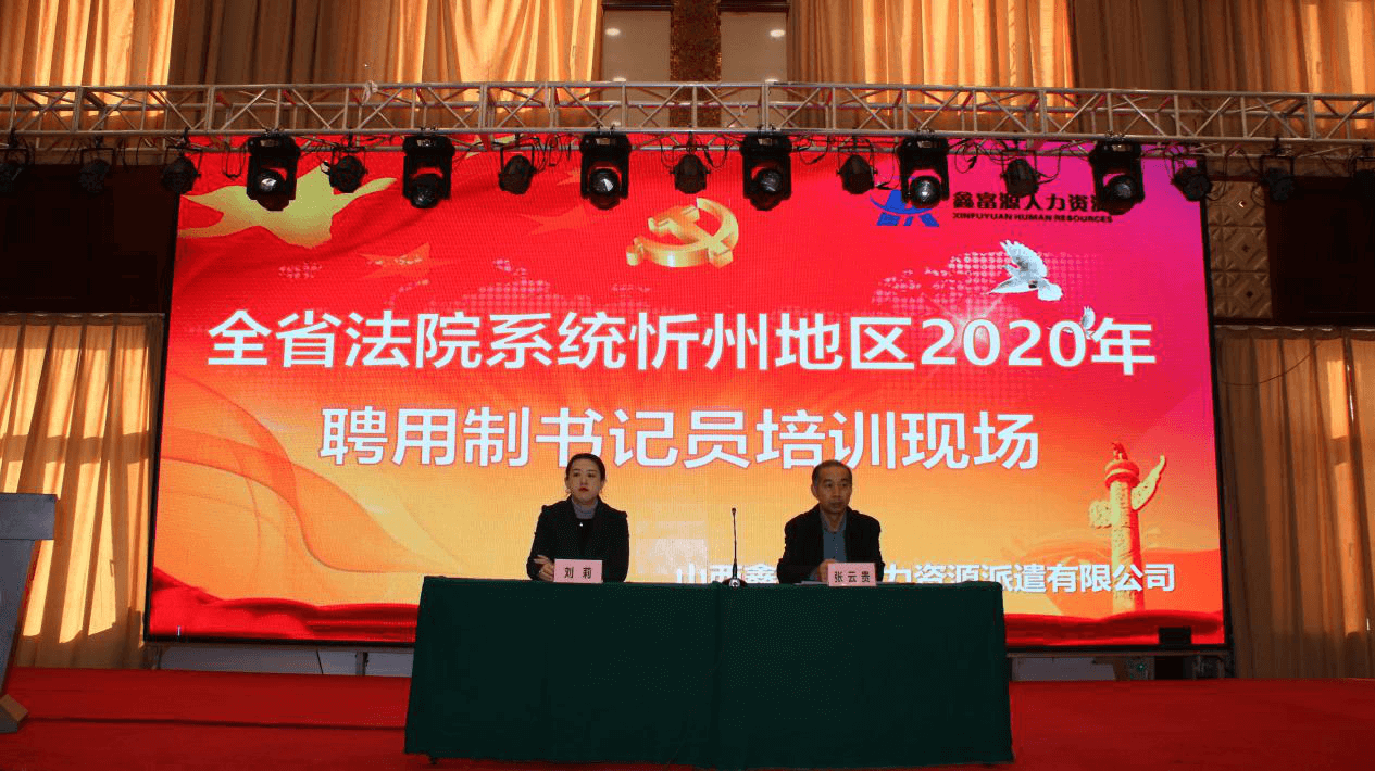 为加强书记员队伍建设,进一步提升全省法院聘用制书记员的专业水平和职业技能,更好地服务于审判执行工作,在忻州地区两级法院的大力支持下,山西304永利官网网址人力资源派遣有限公司忻州分公司于2020年10月23日至25日在忻州市瑞龙国际大酒店组织实施了全省法院系统忻州地区2020年度聘用制书记员培训工作。