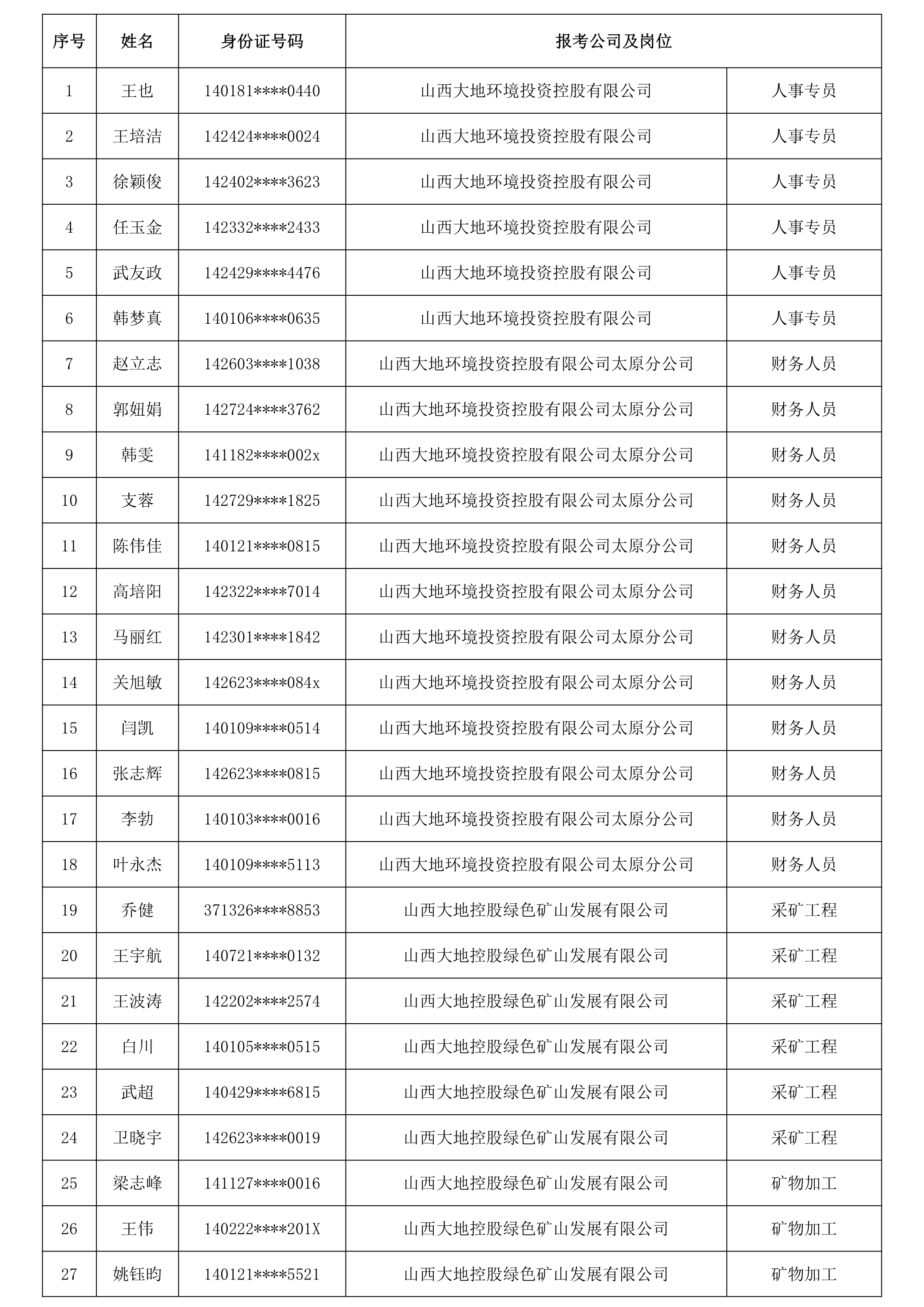 一、进入笔试人员名单