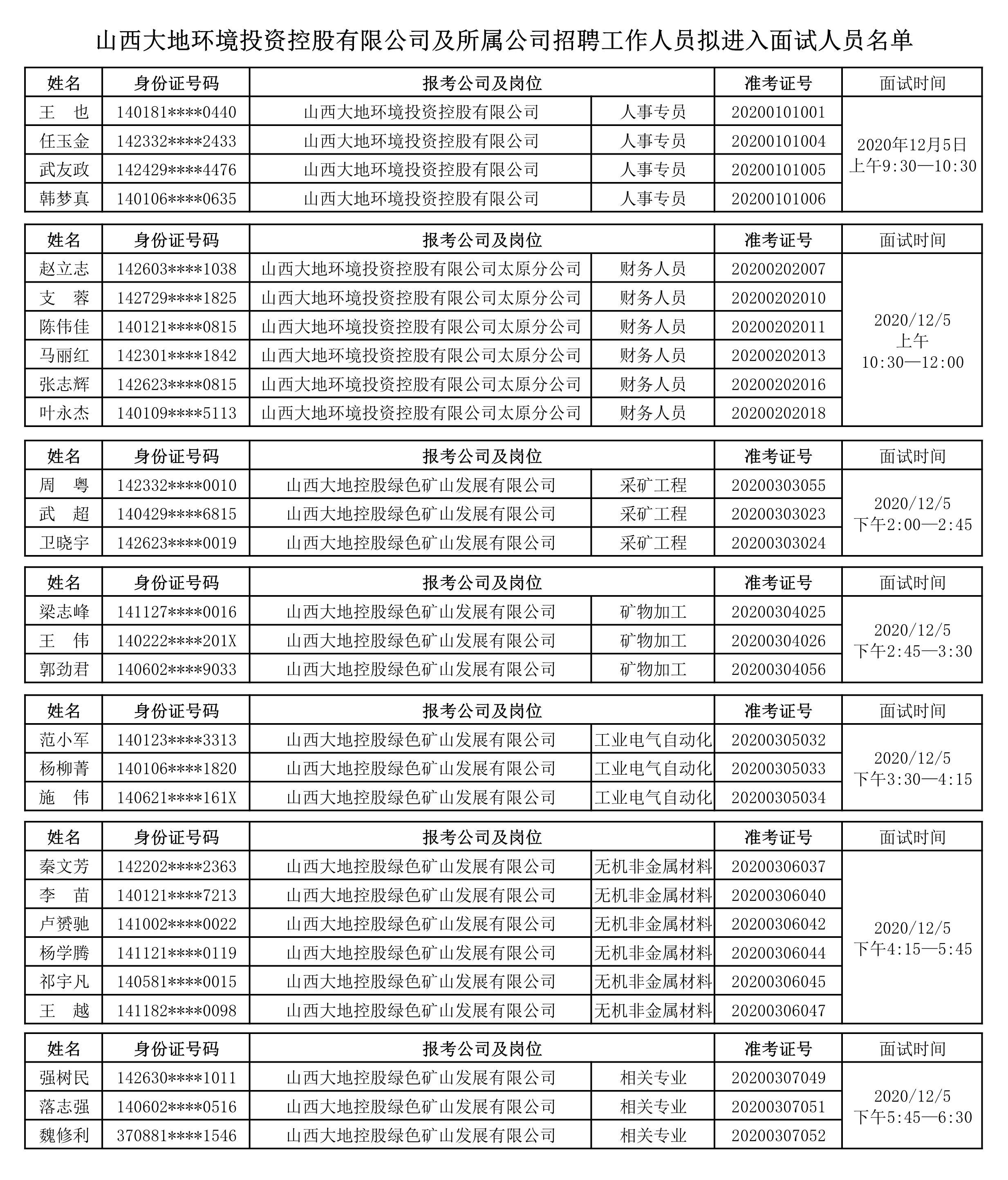 山西大地环境投资控股有限公司及所属公司招聘工作人员进入面试人员名单(见附件)