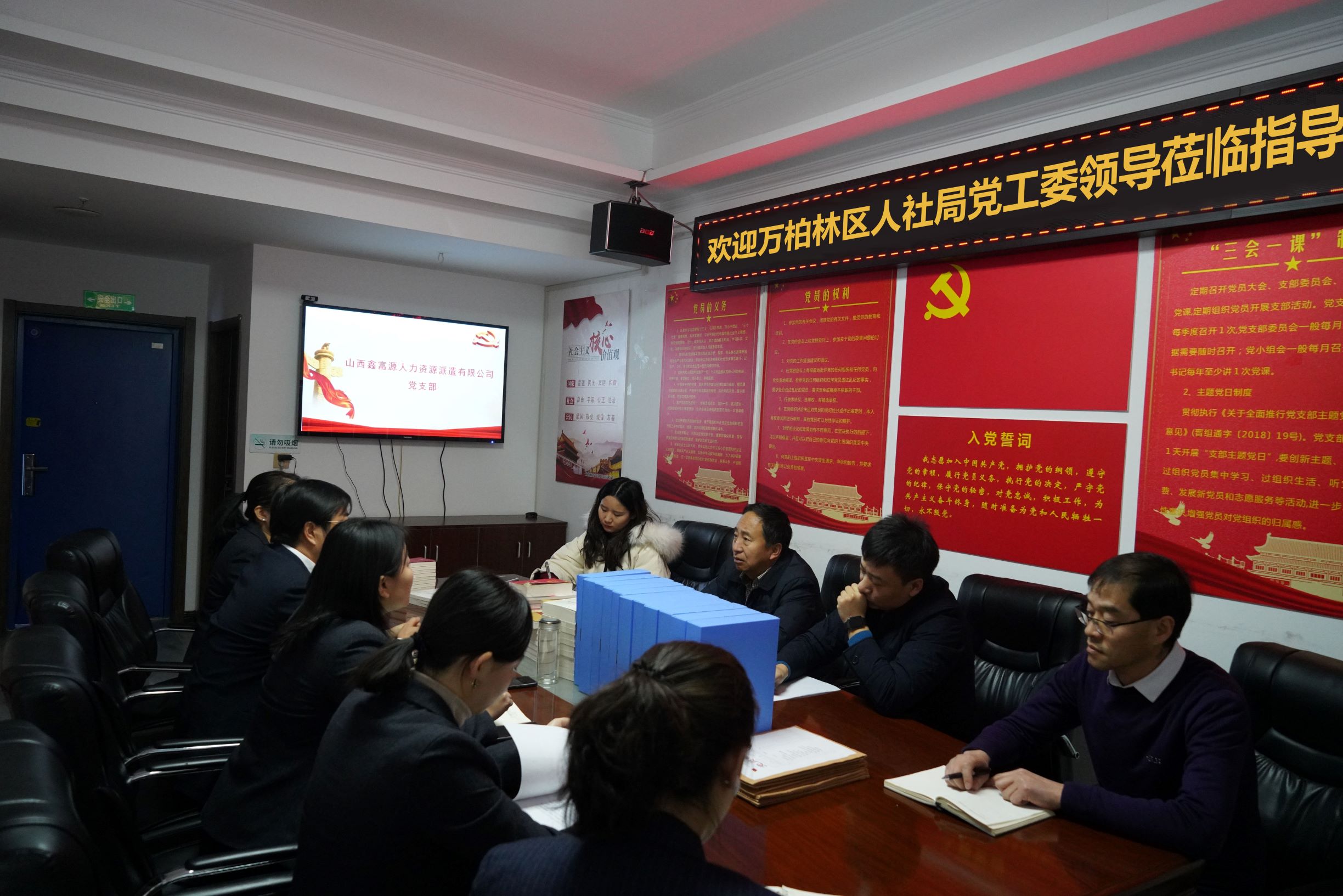 2020年12月29日上午,万柏林区人社局党工委委员、副局长刘双海,就业培训股股长岳勇刚,党建办公室干事朱慧一行莅临我公司考察指导304永利官网网址支部党建工作。中源人力集团董事长韩红光、304永利官网网址公司总经理李小芳、304永利官网网址党支部书记曹幸、304永利官网网址公司三大区域总监接待了来访领导并共同参与了座谈活动。