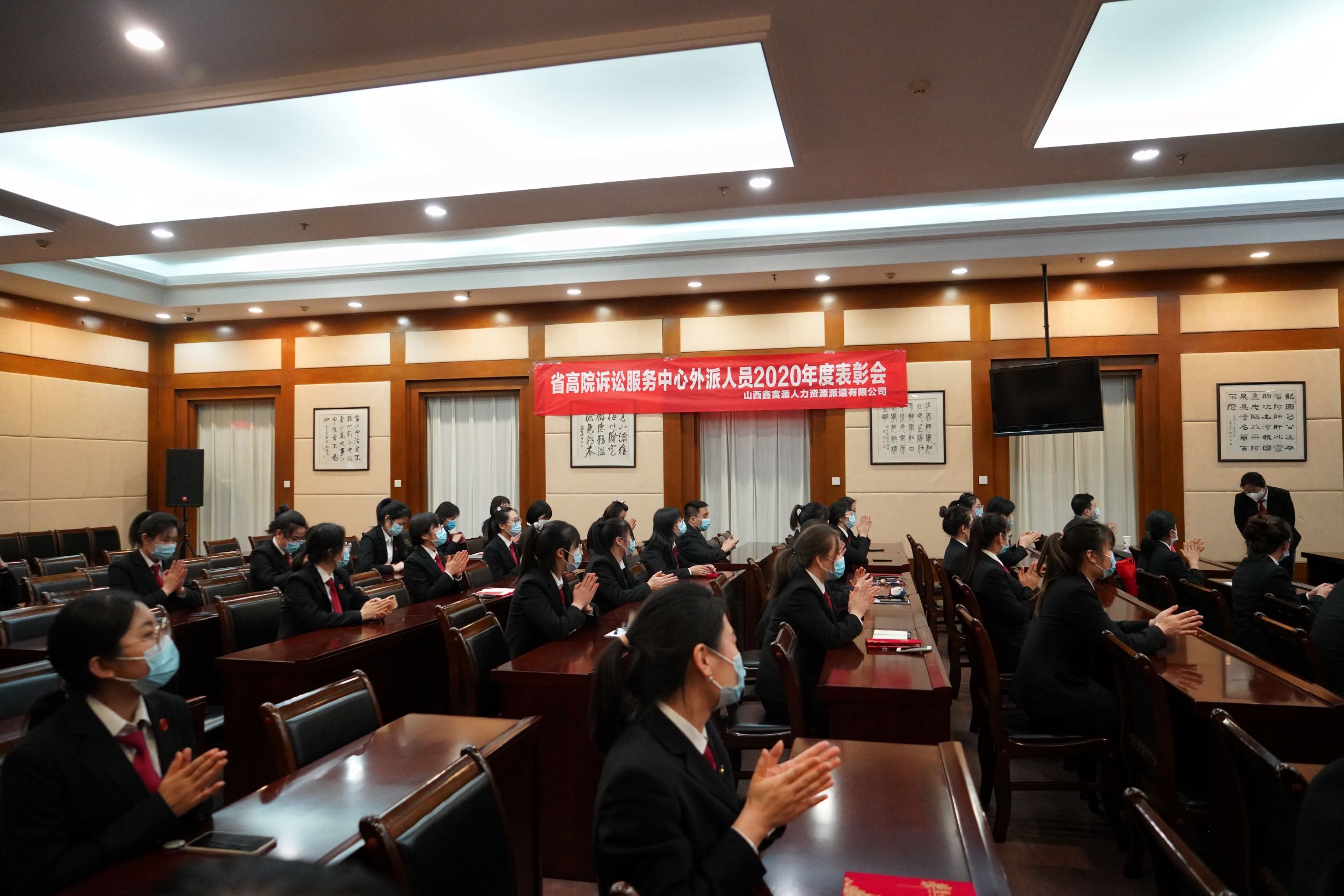 2021年2月1日下午,在高院领导的大力支持下,我公司在山西省高级人民法院会议室圆满召开了省高院诉讼服务中心外派人员2020年度表彰会。公司总经理李小芳,晋北大区区域总监、诉讼服务中心外包项目负责人刘莉,晋中大区区域总监郭花萍,晋南大区区域总监曹代平,党支部书记曹幸出席了会议。