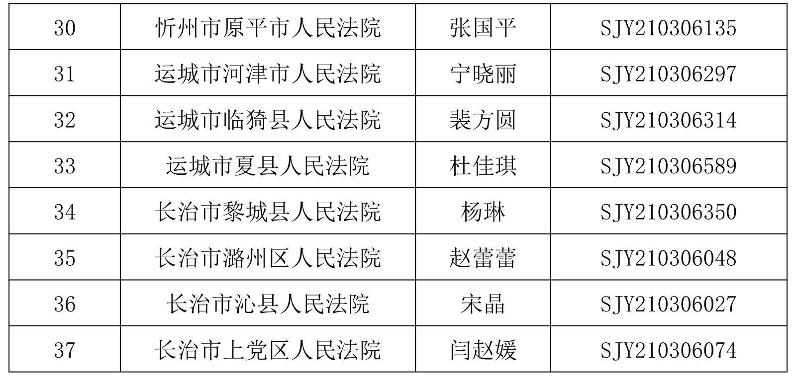 根据山西304永利官网网址人力资源派遣有限公司于2021年2月7日发布的公开招聘39名书记员的相关要求,经过网上报名、资格审查、理论考试、速录技能测试、综合面试等环节,现确定37名入围体检人员,名单如下: