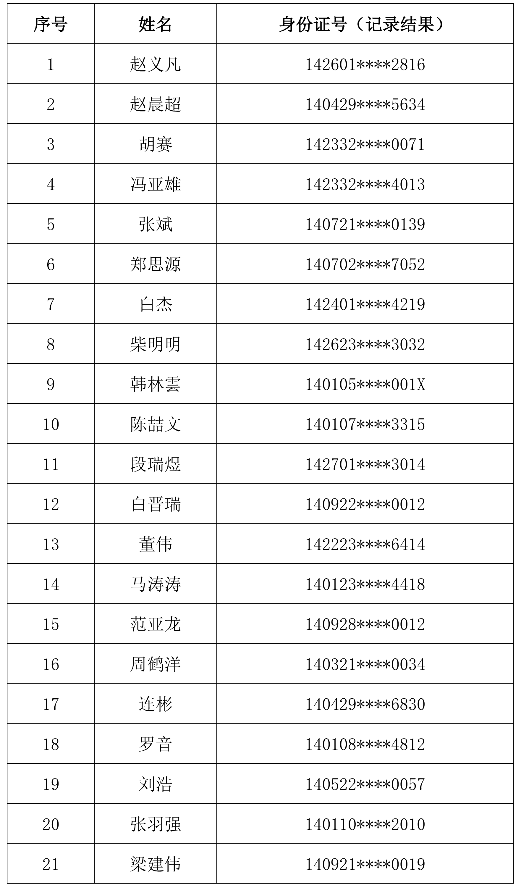 本次成功报名消防战斗员(太原/五台山机场)岗位的人员。