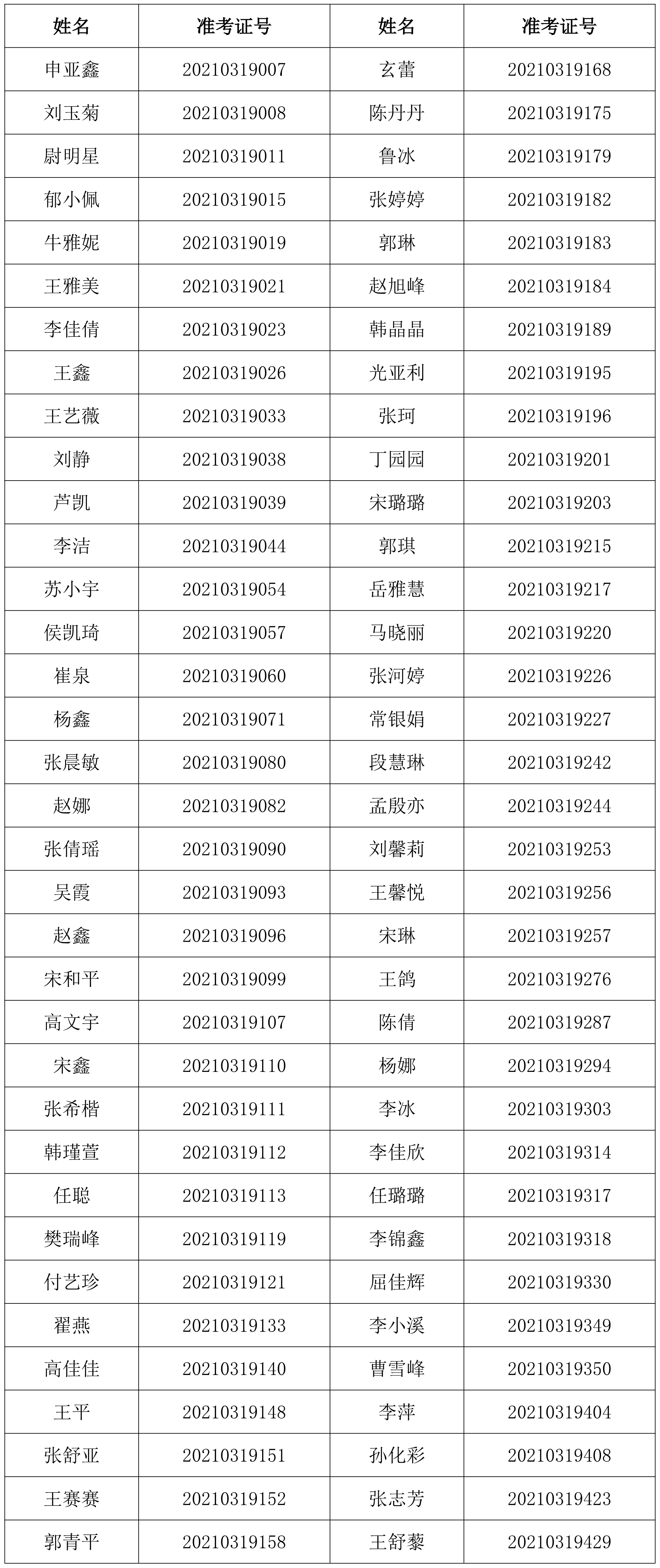 一、入围体检人员名单