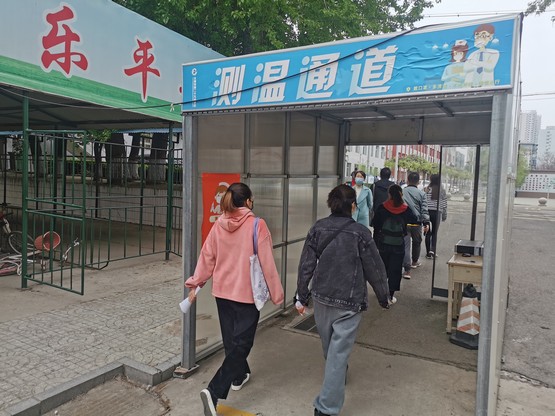 四是严格疫情防控。报考人员进入考场前,考务工作人员严格按照常态化疫情防控要求进行人脸识别、身份核对、体温监测、健康码和行程码查验等防疫检测工作。