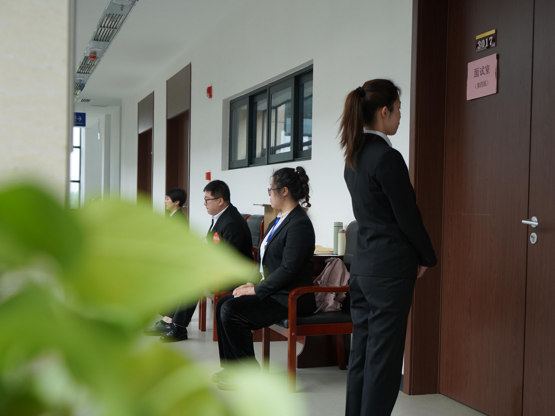 面试现场纪律严肃、秩序井然;考生精神饱满、沉着应答;场内场外工作人员各司其职,严密配合。面试工作顺利、优质、高效开展。
