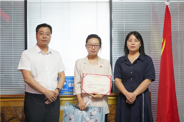 直播结束后,304永利官网网址党支部副书记张俊慧宣读了支部庆祝建党100年活动方案,接着支部组织委员李晨源宣读了表彰决定。郭琳同志被评为“优秀共产党员”,曹幸同志被评为“优秀党务工作者”,张刘帅同志被授予“突出贡献奖”,张橙同志被授予“敬业奖”。公司董事长韩红光和总经理李小芳为受到表彰的同志依次颁奖。获奖同志各自陈述了个人事迹,分享了他们从百年党史中坚定理想信念,汲取奋进力量,不断提升自我的成长经历和学习历程。