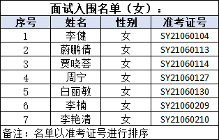 一、面试入围人员名单
