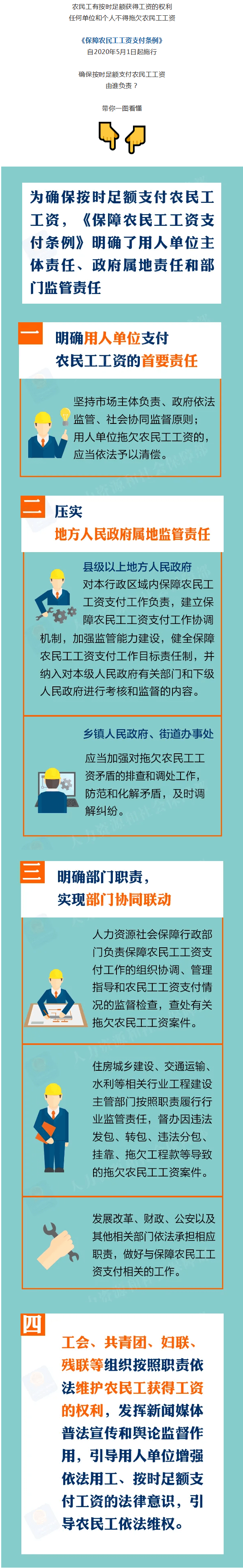 【一图读懂】 确保按时足额支付农民工工资,由谁负责?