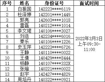 根据山西304永利官网网址人力资源派遣有限公司于2022年2月10日发布的公开招聘12368诉讼服务热线坐席人员2名及储备人员5名的相关要求,经过网上报名、资格审查、理论考试等环节,现就面试有关事宜通知如下: